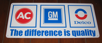 AC GM DELCO The Difference is Quality Metal Sign - Olds Pontiac Chevrolet Chevy