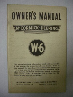 Title (ebay affiliate link): Original McCormick Deering International Harvester W-6 Tractor Owner's Manual