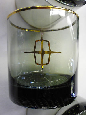 Title (ebay affiliate link): 5 1960's Lincoln Continental cocktail rock glasses, tumblers - logo/trim in gold