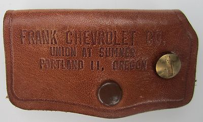 Title (ebay affiliate link): Vintage 1950's Leather Key Case Fob Advertising Frank Chevrolet Co. Portland OR
