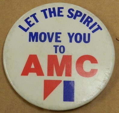 AMC AMX SPIRIT EAGLE JAVELIN RAMBLER PINBACK BUTTON PIN DEALER DEALERSHIP PROMO