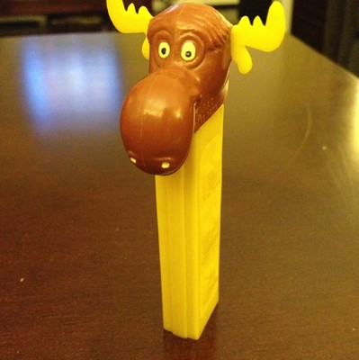 Vintage Bullwinkle PEZ Dispenser Yellow Stem No Feet 1960s