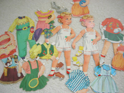 Title (ebay affiliate link): GIRL TWIN PAPER DOLLS - 13" Tall - W/12 Outfits, shoes, etc. - VGC