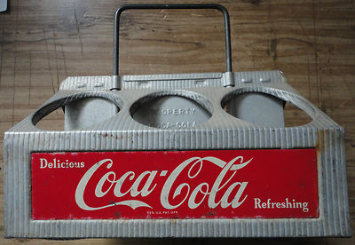 Title (ebay affiliate link): Antique Coca-Cola 6-Pack Bottle Carrier / Caddy - Aluminum - 1950s Coke