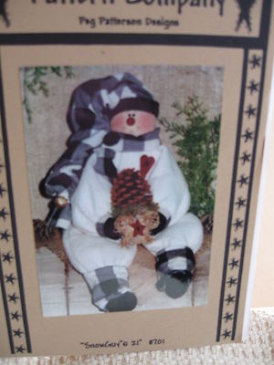 SALE! PRIMITIVE SNOWMAN FABRIC DOLL SEWING PATTERN 21"
