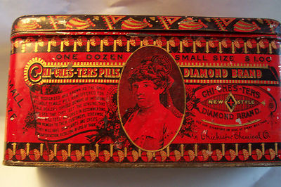 Title (ebay affiliate link): CHI-CHES-TERS PILLS TIN - DIAMOND BRAND CHICHESTER CHEMICAL CO. PHILA. PA 1906