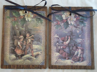 Title (ebay affiliate link): 10 WOODEN CHristmas Hang Tags/Vintage Kids Gift Tags/Prim Winter Tree Ornaments