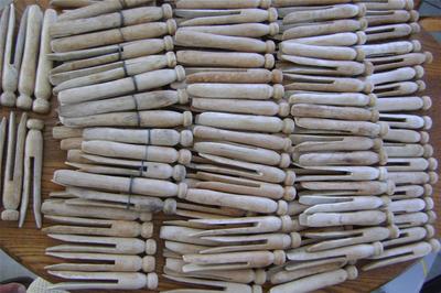 Title (ebay affiliate link): VINTAGE LOT OF 130 + WOOD WOODEN ROUND TOP CLOTHES PINS METAL BANDS STEAMPUNK