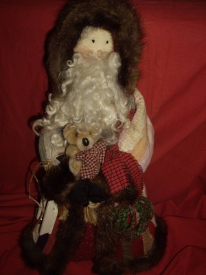 Title (ebay affiliate link): Vintage Primitive Folk Art 19" Tall Santa Made from Vintage Quilt & Mink Fur NR!