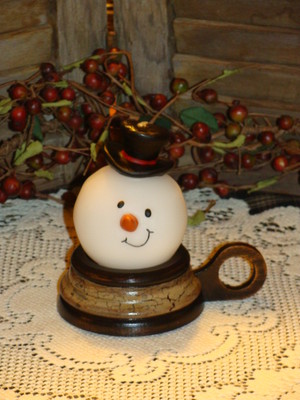 Title (ebay affiliate link): Primitive Wood Finger Loop Candle Holder Snowman Candle Black Tan Crackle Decor