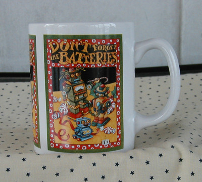 Title (ebay affiliate link): Mary Engelbreit Christmas Mug "Don't Forget the Batteries" Great Gift for Guy 2