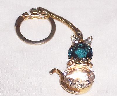 Title (ebay affiliate link): Vintage Prong Set Green & Clear Rhinestone Cat Kitty Keychain Key Chain