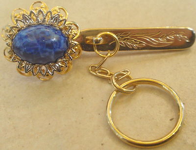 EBABE'S vintage 50s JEWELED CLIP ON KEYS HOLDER clips on or in purse Blue Stone