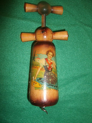 VINTAGE Wooden collectible CORKSCREW : hand painted art must see