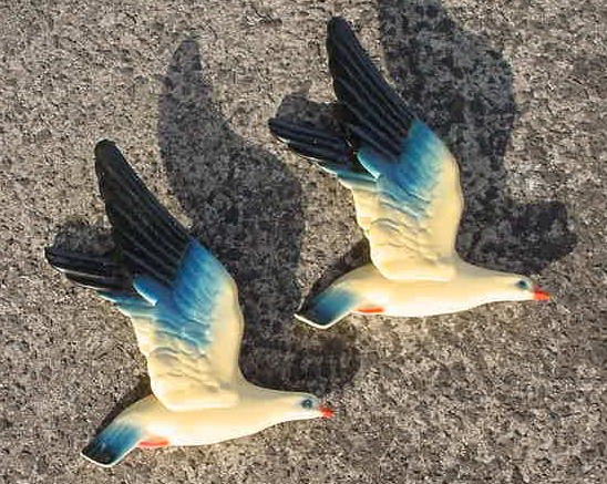 Title (ebay affiliate link): ANTIQUE FLYING WALL BIRD PAIR OF SEAGULLS-HAND PAINTED PLASTER-FLIGHT OF BIRDS!