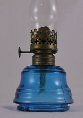 Great Antique Miniature Dark Aqua Glass Finger Lamp Chamber Light