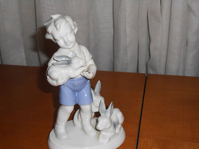 Darling German Porcelain Figurine Boy with Rabbits Gerold Porzellan Bavaria