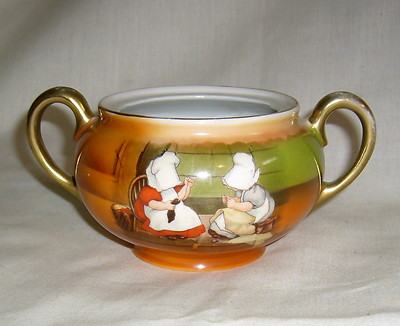 ANTIQUE EARLY ROYAL BAYREUTH MARKED SUNBONNET SEWING BABIES SUGAR BOWL BASE