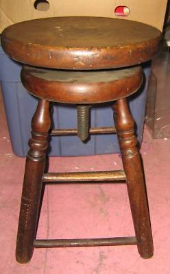 Title (ebay affiliate link): ANTIQUE SOLID THICK WOOD ADJUSTABLE SEAT PIANO STOOL