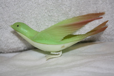 Title (ebay affiliate link): VINTAGE CHRISTMAS TREE ORNAMENT GREEN PLASTIC BIRD. CIRCA 1940's.