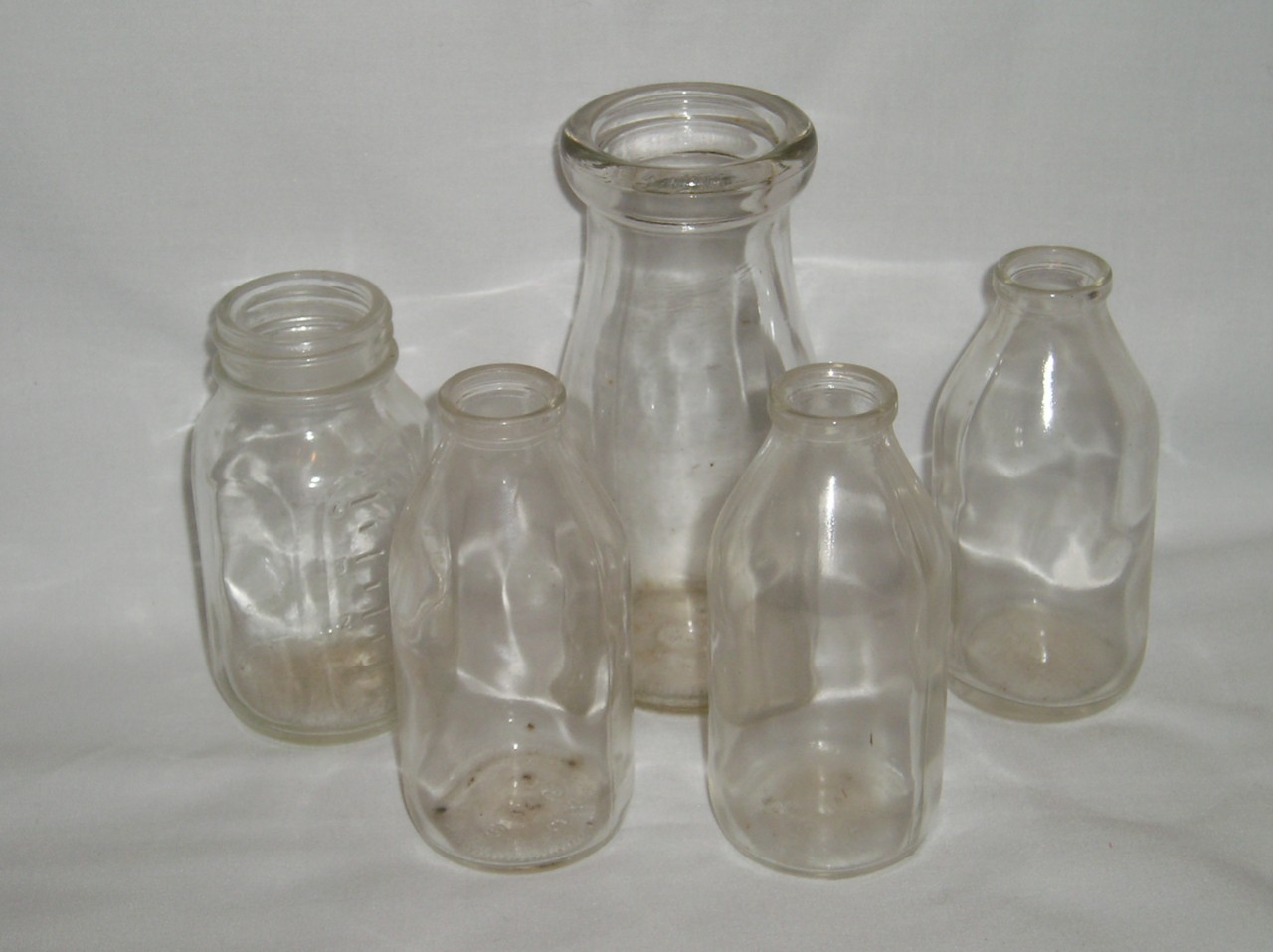 5 Vintage Glass Milk Baby or Doll Bottles Estate Lot