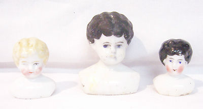 Three Small Antique China Heads, Doll Head Germany