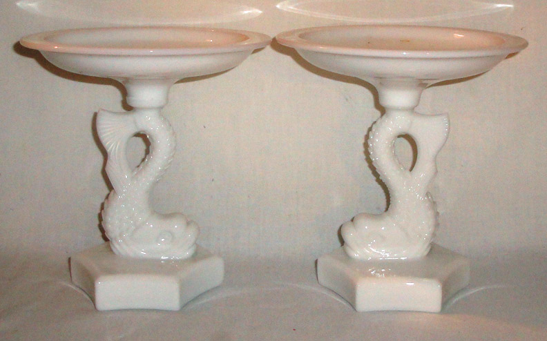 2 Old Milk Glass Dish Dolphin Fish Ftd. Bowls Compotes