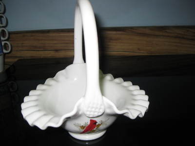 Vintage Fenton Milk Glass Basket Hand Painted Cardinal