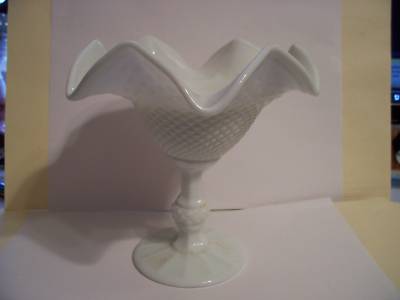 Vintage White Milk Glass Diamond Point & Fluted Compote