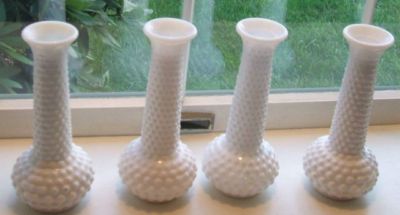 E.O. Brody White Milk Glass Hobnail Vases Matched Set 4