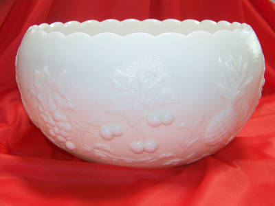 PRETTY VTG MILK GLASS PUNCH BOWL HIGH RELIEF DESIGN