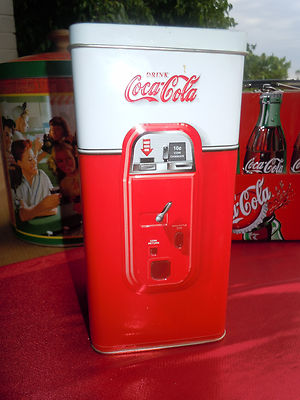 Title (ebay affiliate link): Coca Cola Soda Advertzing Tin & image of Antique Coke machine. Collectible Coke
