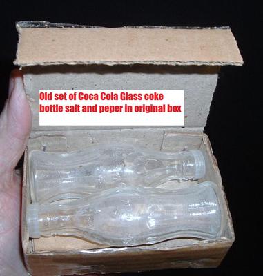 Title (ebay affiliate link): Vintage Antique Coca Cola Soda Pop Salt & Pepper Glass Coke Bottle Shakers n Box