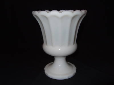 Vintage White Milk Glass Vase Compote Scalloped Edge
