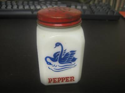 Vintage Milk Glass Pepper Shaker with Blue Swans