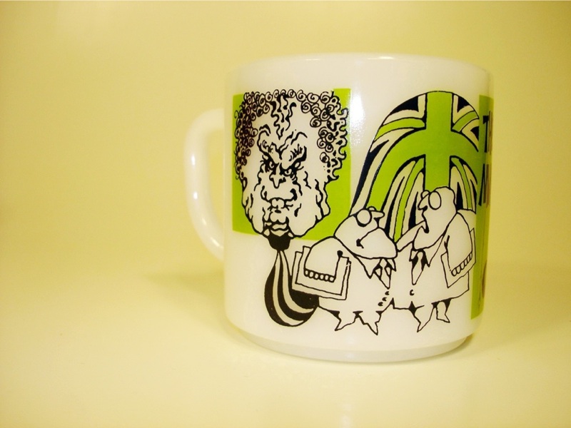 Vintage John Diefenbaker Milk Glass caricature mug 1971