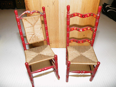 ANTIQUE VINTAGE MINIATURE DOLLHOUSE FURNITURE CHAIR & ROCKING ROCKER CHAIR