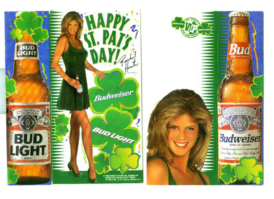 Title (ebay affiliate link): BUD LIGHT BUDWEISER TABLE TENT ST. PATRICS DAY 1994 RACHEL HUNTER SUPERMODEL
