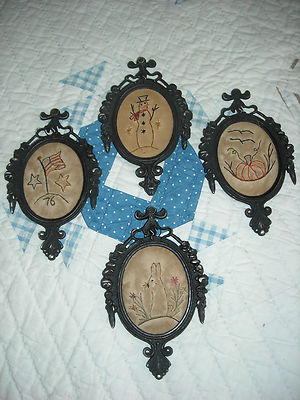 Title (ebay affiliate link): Prim Handmade Set of Stitched Seasonal Samplers ~ Metal fancy frames ~ Black