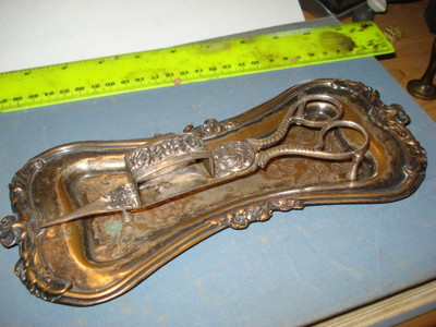 Title (ebay affiliate link): 18TH CENTURY MATCHING SET OF SILVER PLATED CANDLE SNUFFERS & TRAY SHEFFIELD