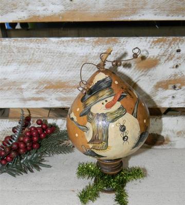 Primitive SNOWMAN GOURD MAKEDO Folk Art Christmas Snow Tree Decoration