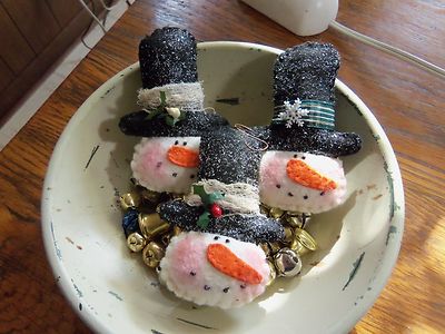 Title (ebay affiliate link): Prim hoilday ornies/bowl fillers *WINTER/CHRISTMAS VICTORIAN SNOWMEN* set/3