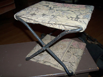 ANTIQUE VINTAGE VICTORIAN CASTIRON FOOTSTOOL MILKING RUG TAPESTRY SEAT PRIMITIVE
