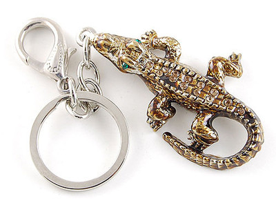 Title (ebay affiliate link): Antique Finish Bronze Tone Emerald Eye Rhinestone Crocodile Alligator Keychain