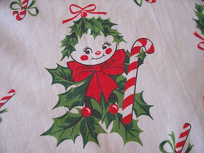 Title (ebay affiliate link): Vtg CHRISTMAS Apron PIXE Elf ELVES Candy Canes Cute Fabric Sunbonnet Pocket
