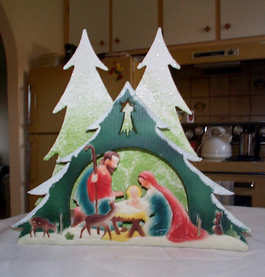 Title (ebay affiliate link): Vintage Antique German Die Cut Cardboard Christmas Fold Out Nativity Scene