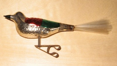 Antique Vintage German Christmas ornament glass bird with clip and spun tail