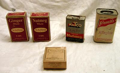 Title (ebay affiliate link): LOT OF 5 VINTAGE paper SPICE TINS CONTAINERS BOXES-PAPER LABELS ETC.