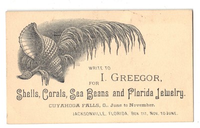Title (ebay affiliate link): Sea Shell Coral & Florida Jewelry Dealer c1890 Adv Trade Card Cuyahoga Falls OH