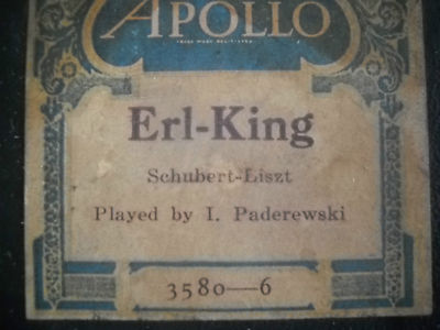 Title (ebay affiliate link): Apollo Player Piano Roll, "Erl-King", Schubert-Liszt, Played by I. Paderewski